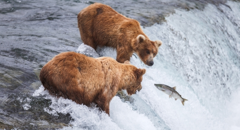 The entire contest revolves around a seasonal feeding frenzy. Each summer, millions of salmon swim upstream through the Brooks River to spawn. Brown bears gather at the falls to take advantage of the easy calories.