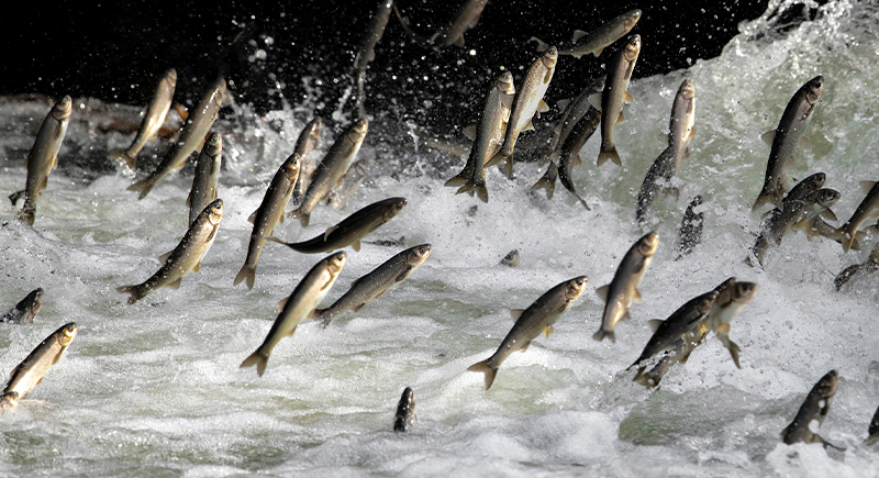 Salmon leave the ocean and push upstream to the rivers where they were born. They climb in elevation, leap waterfalls, and evade predators along the way. Guided by Earth’s magnetic field and an exceptionally sharp sense of smell, they return with remarkable precision to the exact spawning grounds of their birth.