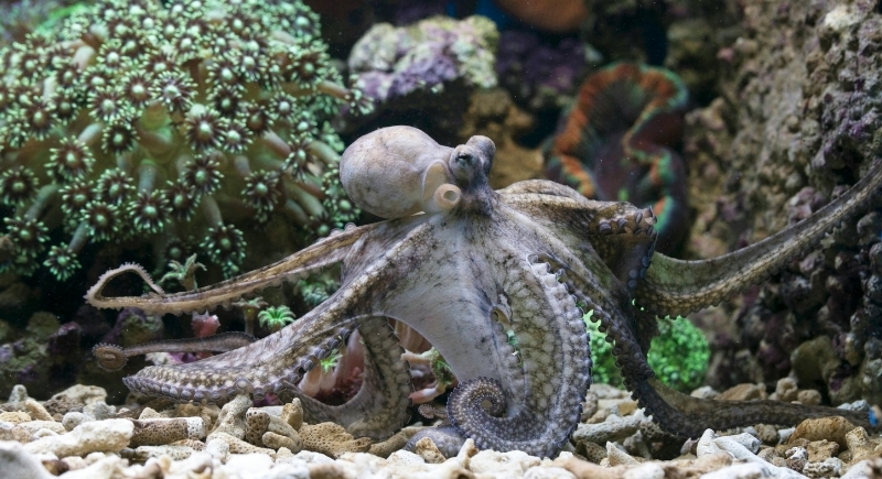 In deep and cold ocean habitats where oxygen levels drop, octopuses rely on a circulatory system built for low-oxygen survival. Two hearts move blood through the gills while a third pumps oxygenated blood through the body. Their blue color comes from copper-based hemocyanin, which carries oxygen more efficiently in cold seawater than iron-based blood proteins.