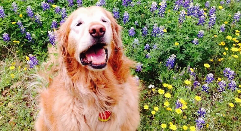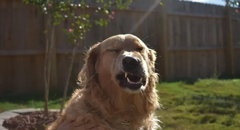 This golden retriever was serving as an “outdoor model” until nature threw pollen at its face. Goldens are infamous for sensitive skin and sniffers, so one whiff of springtime can result in a big sneeze.