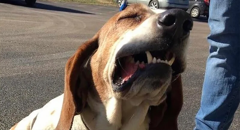 This basset hound looks like it’s performing a dramatic aria. These dogs sniff everything—sometimes a little too well. One whiff went wrong, and suddenly it’s less “showtime” and more “sneeze solo.”