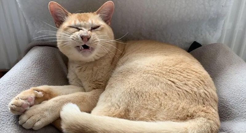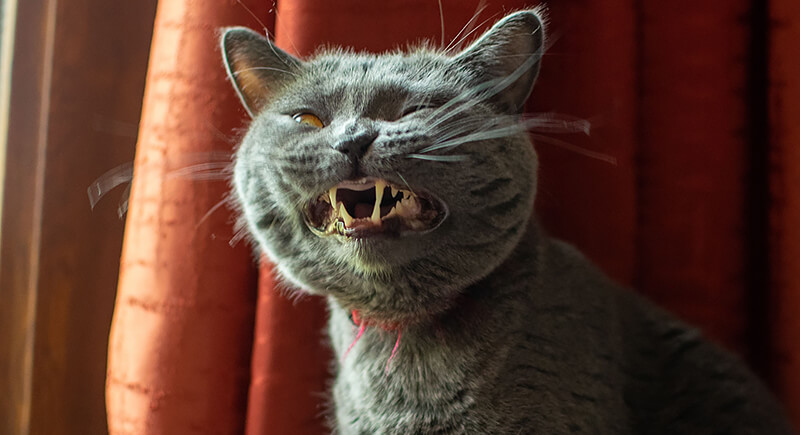 This cat looks furious, but it’s really just trapped in a sneeze frame. The curled lip mimics a snarl, but it’s pure reflex.