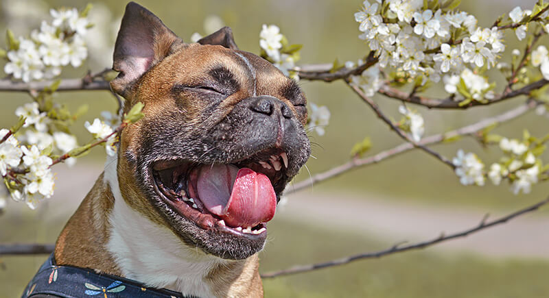 While this bulldog was trying to enjoy some fresh flowers, nature had other plans. Brachycephalic dogs—like bulldogs and pugs—react fast because airflow moves differently through their shortened snouts. This picture shows it, too.