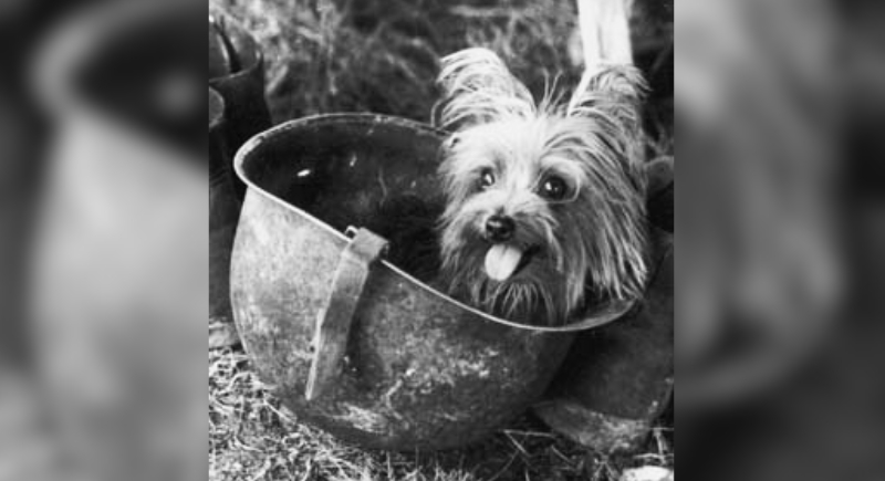 Smoky was a four-pound Yorkshire Terrier. She flew 12 combat missions, survived air raids, and once parachuted from a tree in a custom chute during World War II. She squeezed through a narrow pipe to run communication wire, saving hours of labor and keeping soldiers safe.