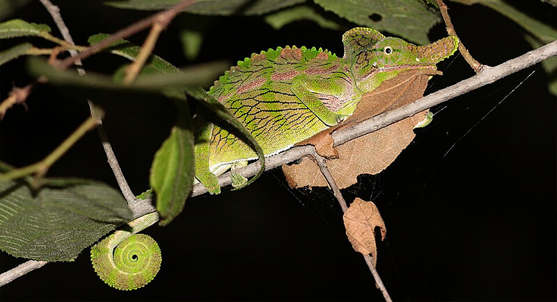 Labord’s chameleon in southwest Madagascar has one of the shortest adult lifespans among vertebrates, often only a few months. Adults lay eggs before the dry season, and those eggs incubate for eight to nine months. By the time the rains return and the young hatch, the previous generation will already be dead. Entire populations can consist only of juveniles for part of the year, so they grow up in a world without adults to copy.