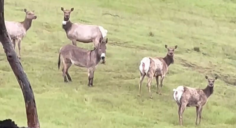 Diesel the donkey vanished in California and was presumed gone. Years later, photos showed him living with wild elk. He moved confidently among them. Locals say he fit in so well that he may have defended the group from predators. One unconfirmed report even credits him with scaring off a mountain lion.