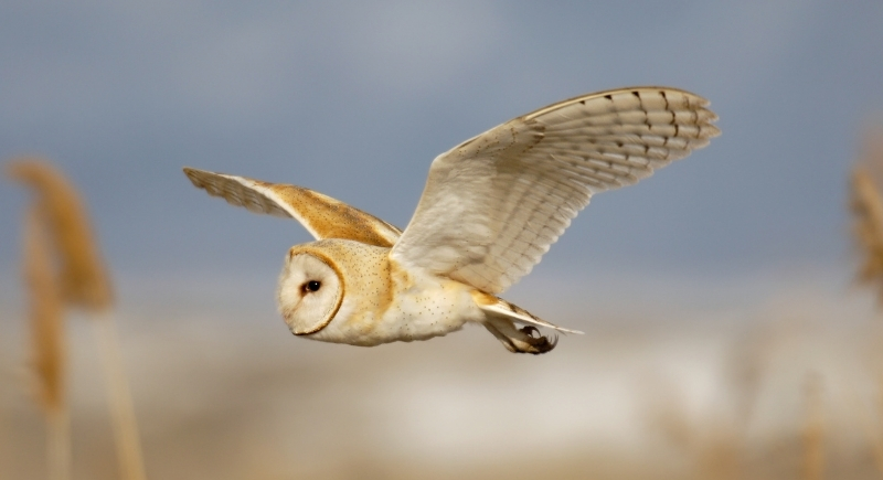 A barn owl flies quietly because its wings have comb-like edges that soften the sound of air moving across them. A velvety surface on the feathers adds more noise control, which helps the bird hear small animals moving in the grass. Larger-than-expected wings allow long gliding stretches that produce even less sound.