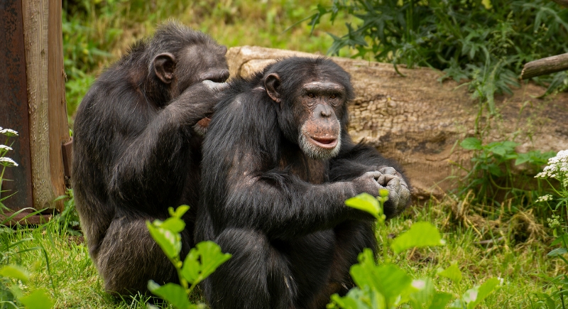 Chimpanzees would apply intelligence to dominance hierarchies. Organized factions could compete for resources and territory, with improvised tools evolving into weapons. Having lived under human study for decades, they might retaliate against captivity and form coordinated ground campaigns rooted in revenge, survival, and social cohesion.