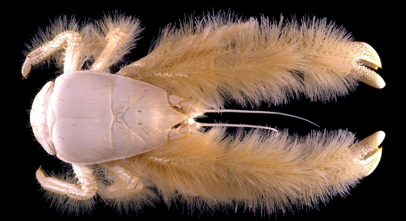 This deep-sea crab lives near hydrothermal vents, where few animals can survive. Its “hairy” claws are covered in bacteria, which may help detoxify its environment—or even provide a food source.