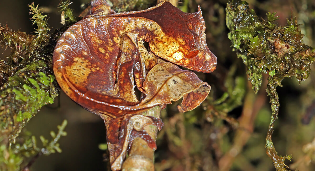 Forests in Madagascar have trees with rough bark, dried leaves, and uneven surfaces that the leaf-tailed gecko leverages to match the area around it. The flattened body and irregular edges closely match these natural textures. This design reflects adaptation to tree surfaces, where any clear outline would immediately attract attention.