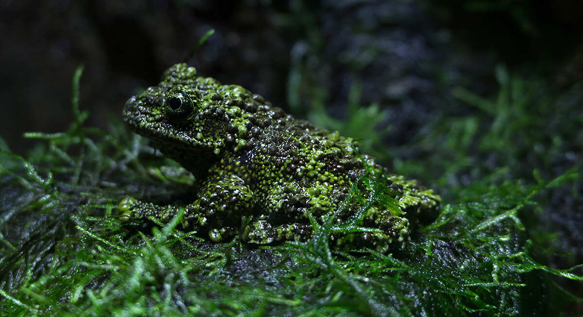 It is not easy to distinguish the Vietnamese mossy frog from moist forest floors, mainly because its appearance closely matches its habitat. Textured skin and muted green tones closely match moss-covered surfaces and irregular growth. And since its body closely matches these textures, it looks like part of the ground rather than a separate animal.