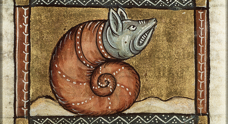 In the 12th-century Aberdeen Bestiary, this leopard was supposed to strike fear into its enemies. Instead, its squashed snout and sagging jaw make it look like it’s sulking after a bath. Bestiaries often valued symbolism over anatomy, so this spotted beast may have been drawn more for meaning than for zoological accuracy.