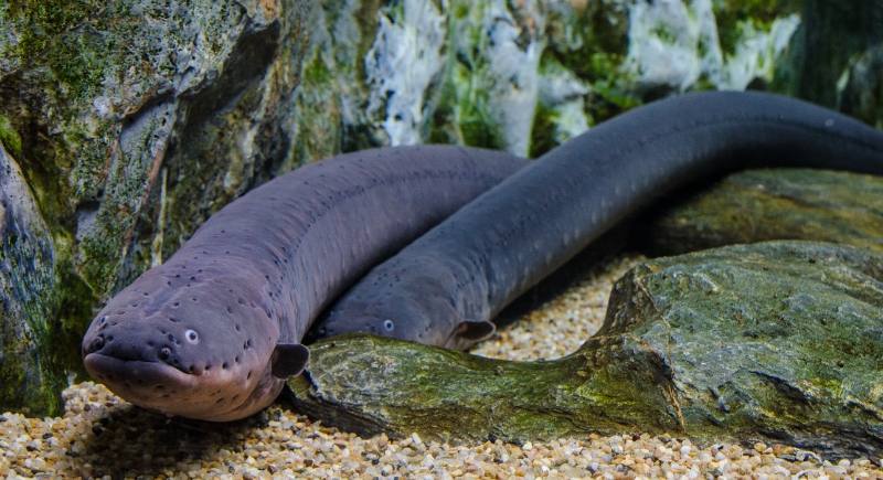 This shocking creature isn’t an eel at all. It’s a knifefish, more closely related to catfish than to true eels. Electric eels breathe air and lack many traits of real eels. The name stuck because of their long bodies and electric abilities, which they use for navigation and defense in murky Amazonian waters.