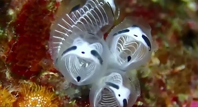 This quirky sea creature with markings that resemble a panda was discovered near Kumejima, Japan. Formally known as Clavelina ossipandae, it belongs to a group of filter feeders that pump water through their bodies and expel it afterwards. Its distinct patterning made it easy for researchers surveying marine invertebrates to spot.