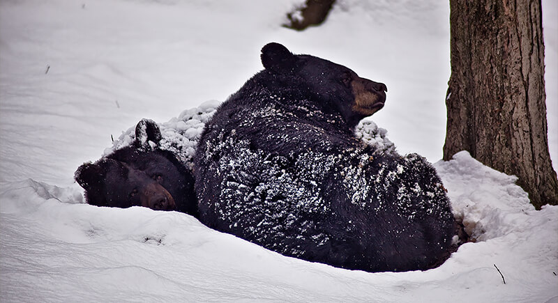 A hibernating black bear barely moves for months, which saves energy when food is impossible to find. It builds fat in the fall, sometimes reaching around 20,000 calories a day, and lives off that supply all winter. The bladder reabsorbs urine, which allows the body to recycle water and minerals.
