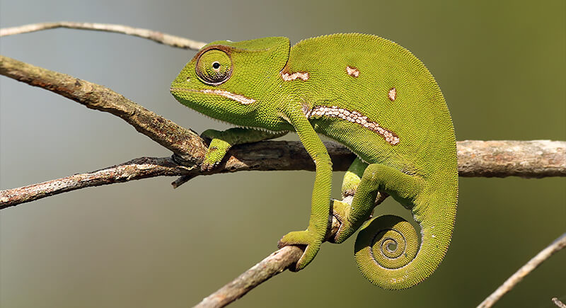 Chameleons have more light-sensitive proteins than we do, which allows them to detect UV light that most people miss. This ability helps them detect predators and possibly even choose mates. UV-sensitive materials for sunscreen labels, counterfeit detection, and security markings were developed by understanding how animals like chameleons process light beyond the visible spectrum.