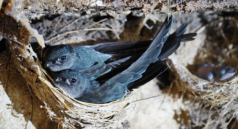 Echoing clicks guide swiftlets through sprawling cave systems across the Indo-Pacific. Their calls, between 1 and 10 kHz, include both single and double clicks, with doubles occurring most often. Their sonar gives them the precision to fly, roost, and nest on vertical cave walls without visual cues.