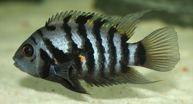These fish don’t care how big their tankmates are. Convict Cichlids challenge fish both larger and smaller, especially when breeding. They’re named for their prison-stripe appearance. They also breed easily and fiercely guard their offspring. They’re popular among experienced aquarists who want activity and personality without massive space requirements.