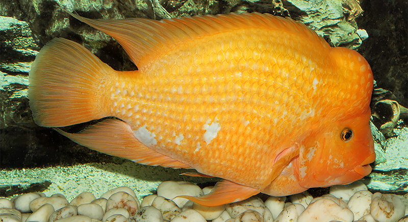 Also called Parachromis dovii, this species can grow longer than two feet and carries an attitude to match. It dominates any tank it’s in and shows zero tolerance for intruders. It responds and sometimes even appears to plan its movements.
