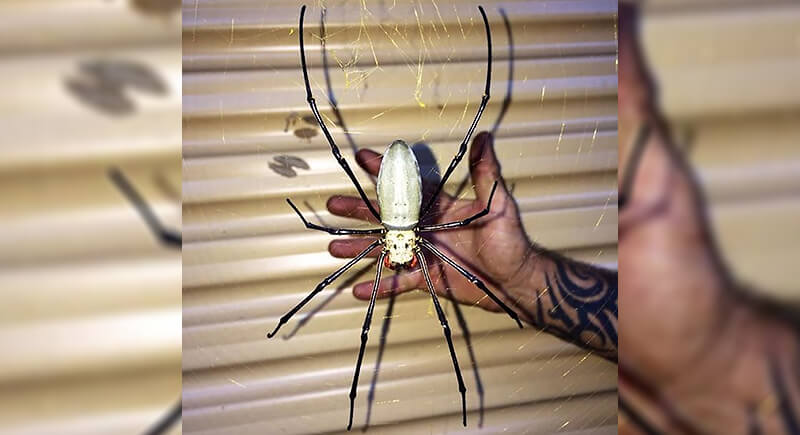 The spider resting across a tattooed hand here is a Golden Orb Weaver, one of the largest web-spinning spiders in the world. Females can grow to 2 inches in body length, with legs spanning the width of a human palm. Their silk is so strong that small birds and bats occasionally get caught in it. They’re not considered dangerous to humans, but staring at one this size is unsettling regardless.