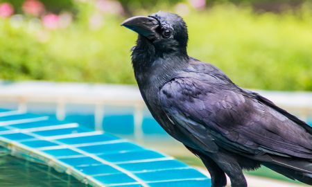 Crow Finds a Brilliant Way to Drink Water Out of a Pool Without Falling in It