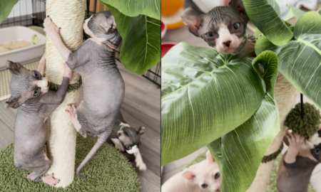 Sphynx Kitten Trio Shows Off Impressive Tower Climbing Skills