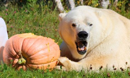 Henry the Polar Bear Got a Giant Pumpkin and His Reaction Is Priceless