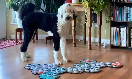Bunny the Sheepadoodle is best known for using a board of large buttons that “speak” single words when pressed. Her owner,...