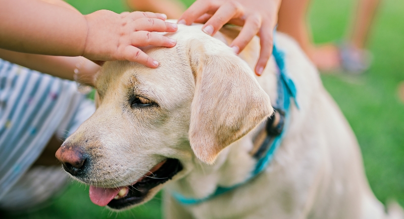 Children can be loud, quick, and unpredictable, all things that stress dogs out. Even well-socialized pups can react defensively if startled by sudden movement or loud noises, such as squealing. Animal safety groups recommend teaching kids to stand still with their hands at their sides and wait for the dog to approach.