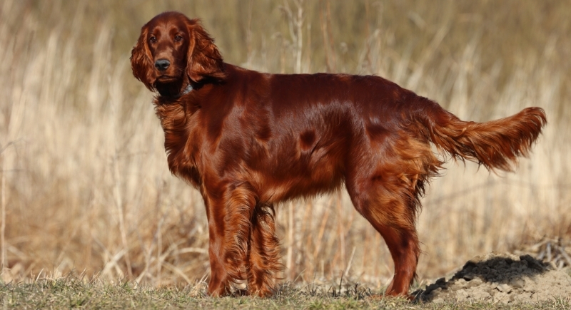 Although they’re known for athleticism, the Irish Setter tends to be gentle and even-tempered when interacting with small children. They enjoy company, show patience during play, and don’t lean into chaos the way some high-energy breeds can. By staying active around kids, they can meet their activity requirements.