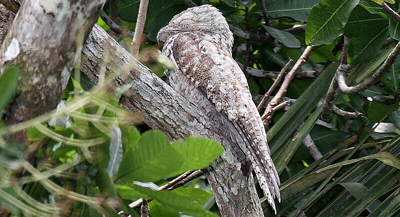 The great potoo is a nocturnal bird native to Central and South America. It has large, lidless eyes and mottled gray-brown plumage that lets it blend seamlessly into tree branches. Though it resembles an owl, it’s a separate species. During the day, it remains completely still to avoid detection. At night, it hunts large flying insects and occasionally bats.
