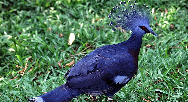 Looking more dressed for a royal ceremony than a forest floor, this pigeon is all powdery blue feathers, maroon eyes, and a fan-like crest so elaborate it seems hand-cut. It’s one of the largest pigeons alive and usually walks rather than flies, rummaging for fruit with surprising calm.