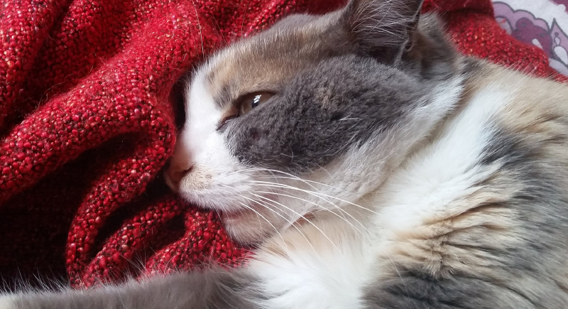 In feline communication, prolonged eye contact can be threatening. So blinking slowly is like saying, “I’m relaxed and not a threat.” Some owners mimic the gesture to communicate back. It’s sometimes called the “cat kiss,” and it’s about as affectionate as felines get with their eyes.