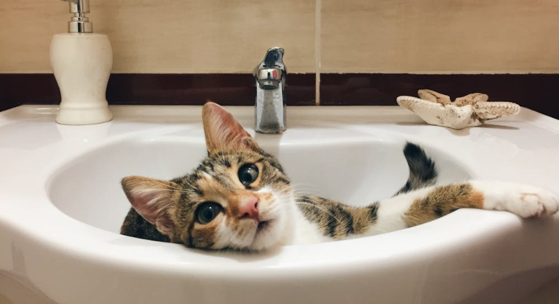 Sinks offer the perfect combination: a cool, contoured shape that hugs their body and a private spot away from foot traffic. Porcelain stays cool, which can feel good on warm days. For cats that dislike change or commotion, bathroom sinks offer another hideaway.