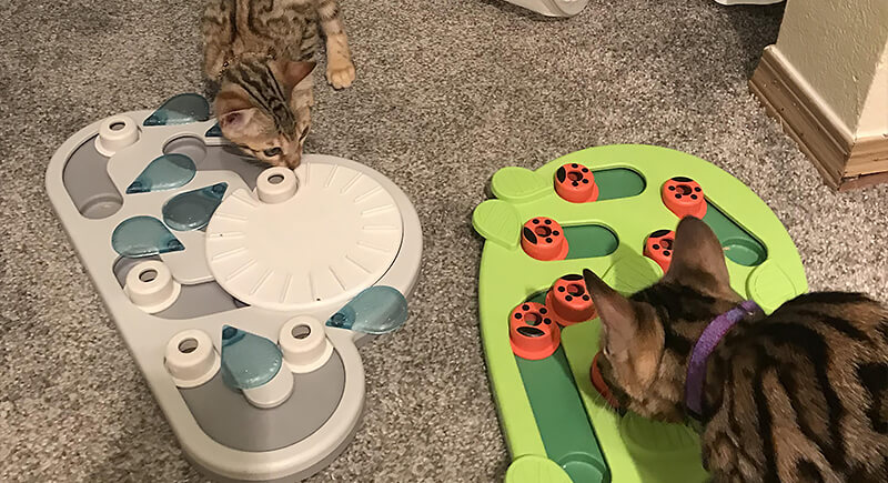Some cats start pushing things around when they’re bored or waiting for food. A puzzle feeder gives them something more satisfying to focus on. Working for each piece mimics natural foraging and adds structure to mealtimes. For most cats, a puzzle filled with kibble is far more interesting than anything sitting on your table.