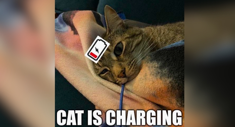Wrapped like a sad little burrito, this cat has fully entered energy-saving mode. The low-battery icon slapped on its forehead might be a joke, but the expression checks out: completely done with everything. It’s the face of someone who barely made it through the morning zoomies and now needs twelve uninterrupted hours of nothing.