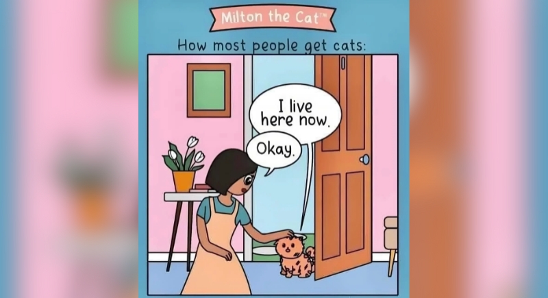 This comic doesn’t exaggerate; it’s how things actually unfold. A cat shows up at your door, steps inside like it’s reviewing real estate, then just… stays. You open the door out of politeness, and suddenly, you’ve signed a 15-year lease you didn’t know existed.