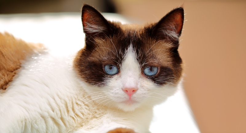 Snowshoe cats captivate with bright blue eyes that contrast sharply against dark facial markings and white paws. The eye color is a result of Siamese ancestry, but the bold mask makes the gaze feel even more intense. Their wide, expressive eyes often appear curious, gentle, and quietly mesmerizing in any light.