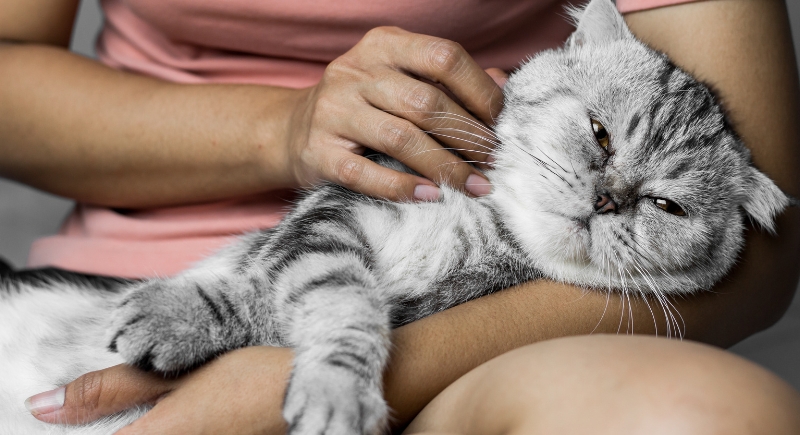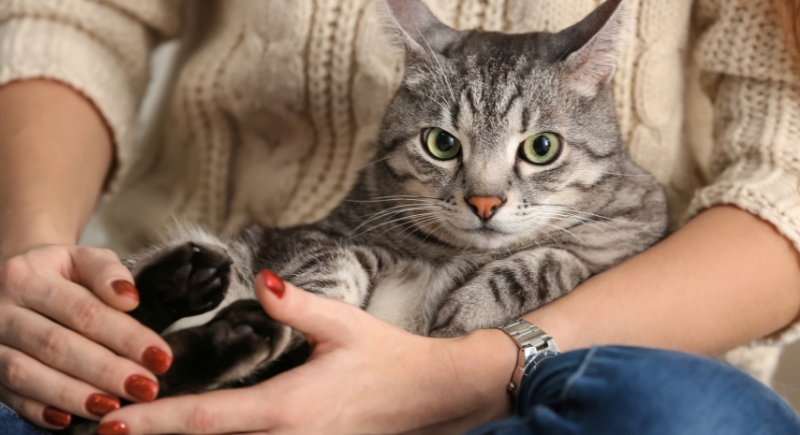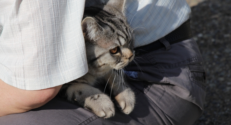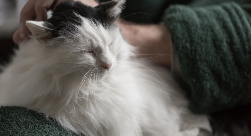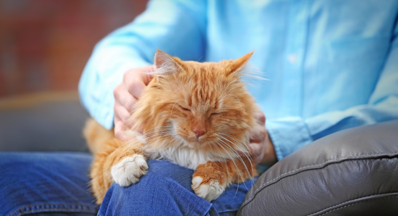 The slight pressure from sitting in a lap might appeal to certain cats in the same way weighted blankets soothe anxious humans. While it’s not fully understood, some cats seem more relaxed when they’re being held or are lying on something that presses gently against their body.
