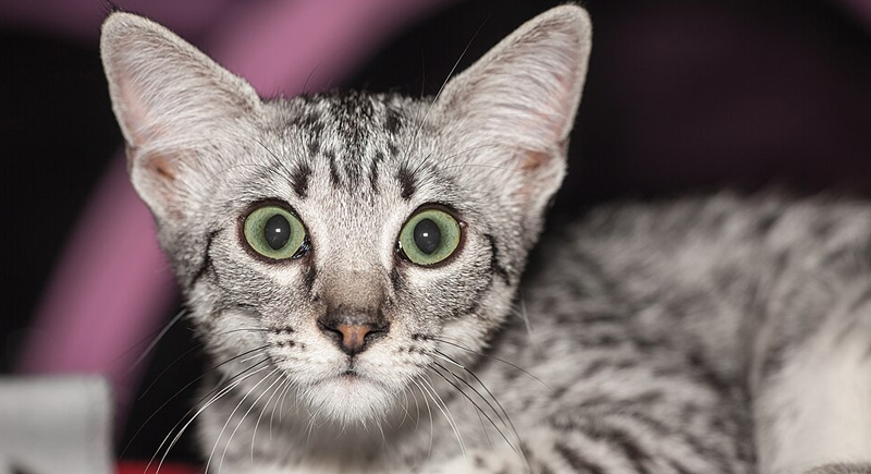 The Mau stands out for its unique green eye color, often called “gooseberry green” by breed enthusiasts. The shade is lighter and more translucent than typical green eyes, which creates a soft but bright effect. As one of the oldest domesticated cat breeds, the Mau also has a natural eyeliner-like marking that makes the eyes appear even more defined.