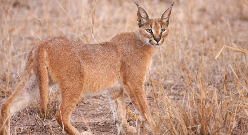 The caracal weighs between 8 and 18 kilograms and relies on speed and precision rather than size. It is known for its ability to leap high and catch birds midair, sometimes grabbing more than one in a single jump. It also hunts small mammals, using sharp hearing to detect movement. Its success rate stays high because each move is quick, controlled, and carefully timed.
