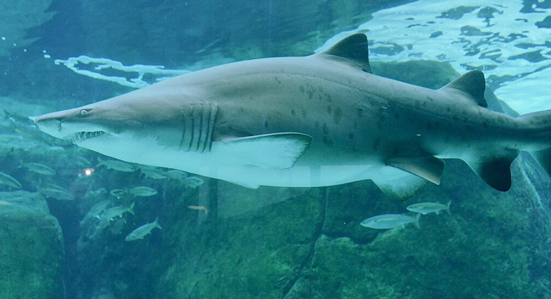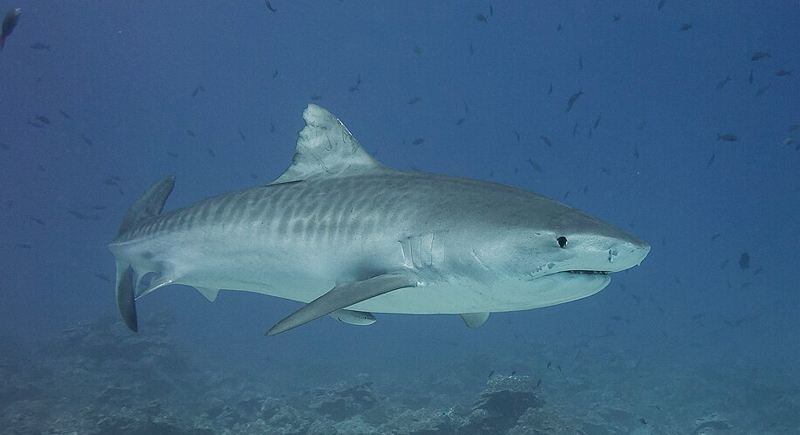 Tiger sharks are the ultimate scavengers. They’ll eat everything from sea turtles and birds to tires and license plates. The dark stripes along their bodies fade with age, but give them their name. They often come up to boats or swimmers in the warm, shallow water because of their curious nature.