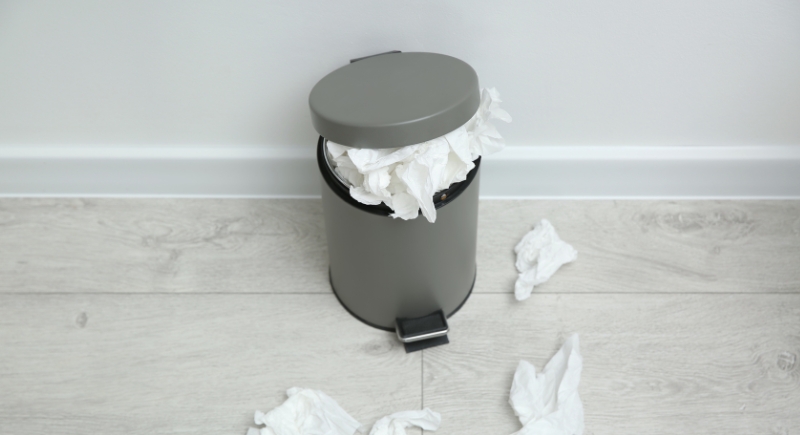 Shredding tissues, tearing up napkins, and tossing food wrappers is instinct. Dogs often mimic the actions of pulling apart prey when they attack a bag of garbage. Even non-food items can resemble what a wild dog might have encountered.