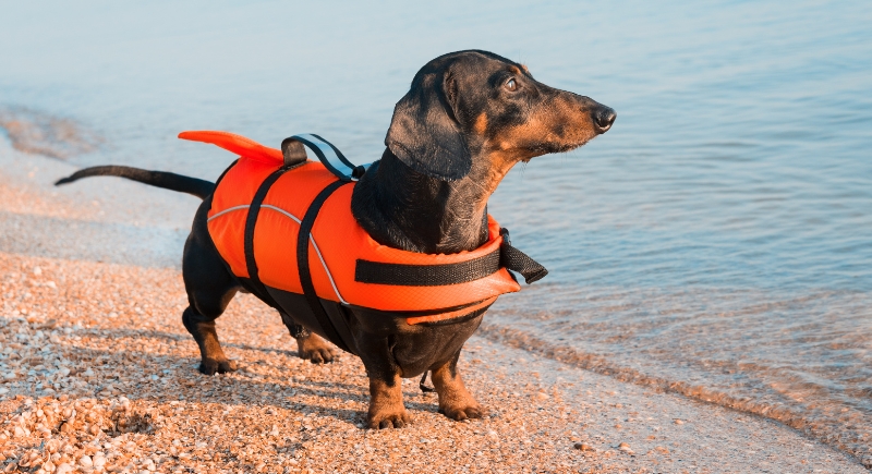 Water changes everything for a dog shaped long and low. A Dachshund’s front legs often do most of the work while the back end starts to sink, giving them an uneven posture that makes swimming tiring. They’re usually much happier with sprinklers, kiddie pools, or shallow streams where they can splash around without fighting to stay level.
