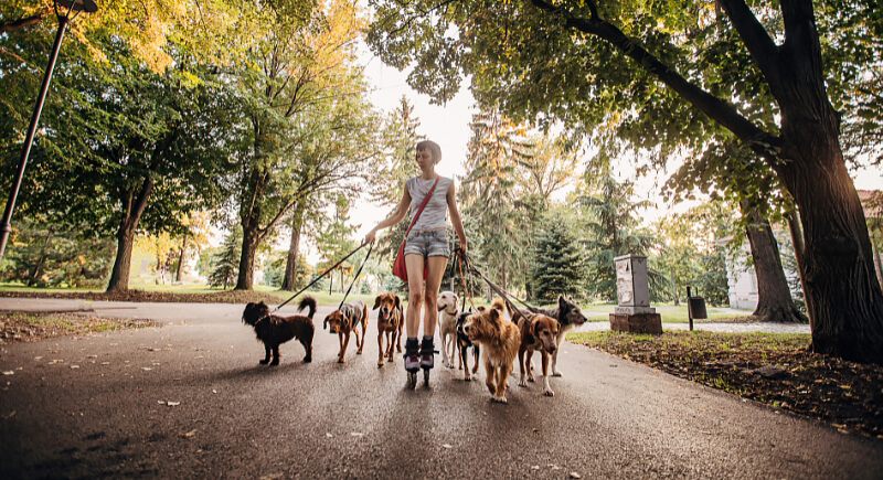 Some dog walkers discovered that taking several dogs out at once is both efficient and profitable. Instead of earning $25 for one walk, walking four dogs simultaneously could net $100. The dogs benefit from socialization, while walkers multiply their income. It’s hitting two birds with one stone.