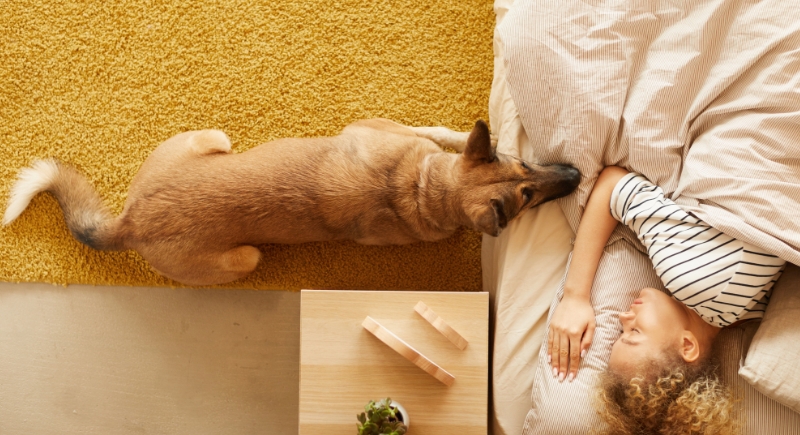 Some dogs that normally sleep through alarms and late-night noise start reacting to smaller nighttime movements, like repositioning in bed or getting up for water. In darker rooms, you might catch them sitting upright, ears forward, paying closer attention than usual to subtle overnight changes in activity.