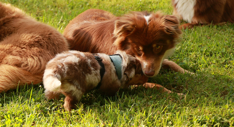 When a puppy nips too hard or launches itself onto an adult’s back mid-nap, the older dog often responds with a warning snap or retreat. It might look harsh to humans, but it’s dog-speak for “too far.” These reactions teach the puppy to tone it down and respect boundaries.