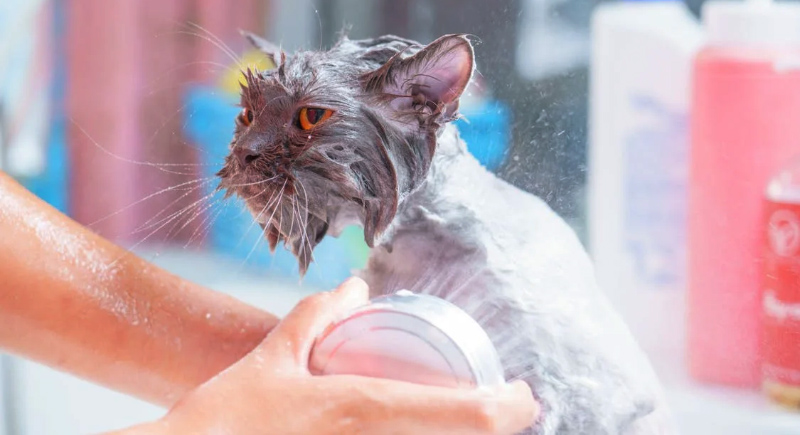 Cats are self-grooming experts, and most of them don’t need baths. Forcing them into water can be a traumatic experience. In case a bath is absolutely necessary (when they have skunk spray or stubborn messes, for example), use lukewarm water, mild cat shampoo, and work quickly. Otherwise, stick to brushing for regular grooming.