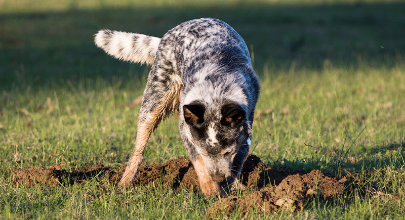 If your dog is tearing up the whole yard, pick one area where digging is allowed. Bury a toy there occasionally so they get the idea. It won’t flip a switch overnight, but it helps shift the habit somewhere more manageable without constant correction.