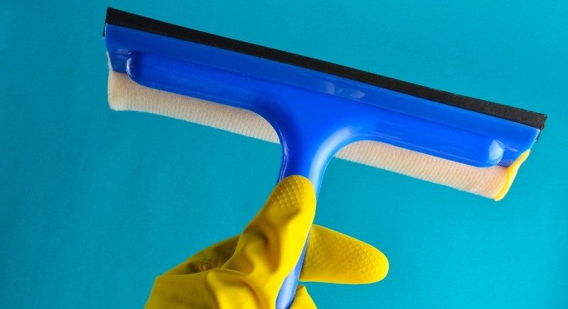 A rubber squeegee pulls up pet hair from upholstery and rugs better than most lint rollers. It’s a budget-friendly method that works exceptionally well on fabric where hair gets embedded. A quick drag is often all it takes.
